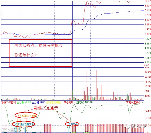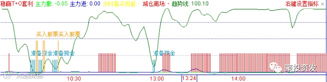 【分时稳赢T+0套利】是一个分时捕捉强势大牛股的指标,借助主力资金流出和流入情况,显示相应的精准信号提示,为投资者在分时当中操作高抛低吸买卖而设计,是提高成功率的得力助手;由于其精准快速、简单明了、使用方便,是业内专业人士、敢死队和普通投资者狙击涨停狙击大阳线的法宝。同时也是逃顶的参考利器。指标无未来函数,性能卓越,效果显著,是传统分时参考指标无法比拟的。运用得当,可以为您的投资带来巨大收益,效果事半功倍。