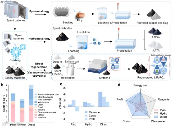 图1. 基于空位介导的废旧磷酸铁锂电池优化再生策略