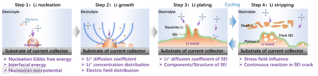 图3. 影响超薄锂金属稳定沉积/剥离过程的因素