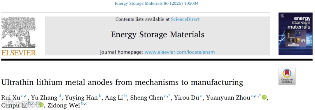 近日,重庆大学的魏子栋教授团队在国际知名期刊Energy Storage Materials上发表题为“Ultrathin Lithium Metal Anodes from Mechanisms to Manufacturing”的观点文章。该文章深入探讨了为实现高能量密度锂金属电池,开发≤20 μm超薄锂金属负极的必要性、所涉及的关键科学机理以及当前主流的制造工艺。文章从电极稳定性机理和超薄电极制造技术两个视角,系统梳理了该领域的最新进展,并分析了核心挑战与未来发展方向。