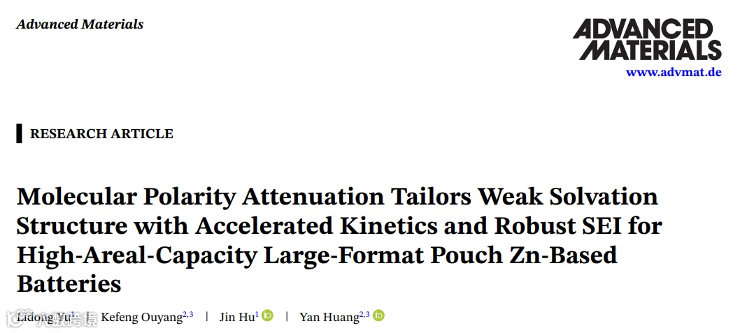 分子极性衰减定制弱溶剂化结构并加速动力学与构建坚固SEI,用于高面容量大尺寸软包锌基电池