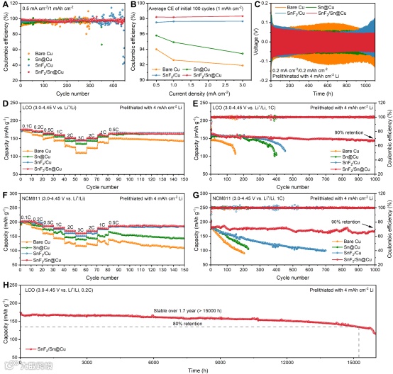 图5.扣式锂金属电池的电化学性能