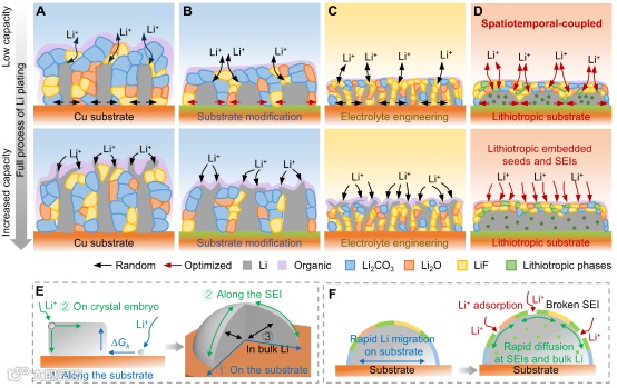 图1.时空耦合的锂成核生长趋向性控制示意图