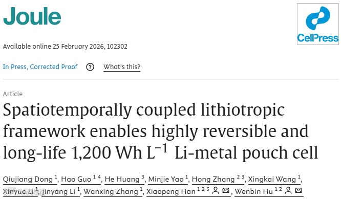 时空耦合的亲锂框架助力实现高可逆、长寿命的1200 Wh L-1锂金属软包电池