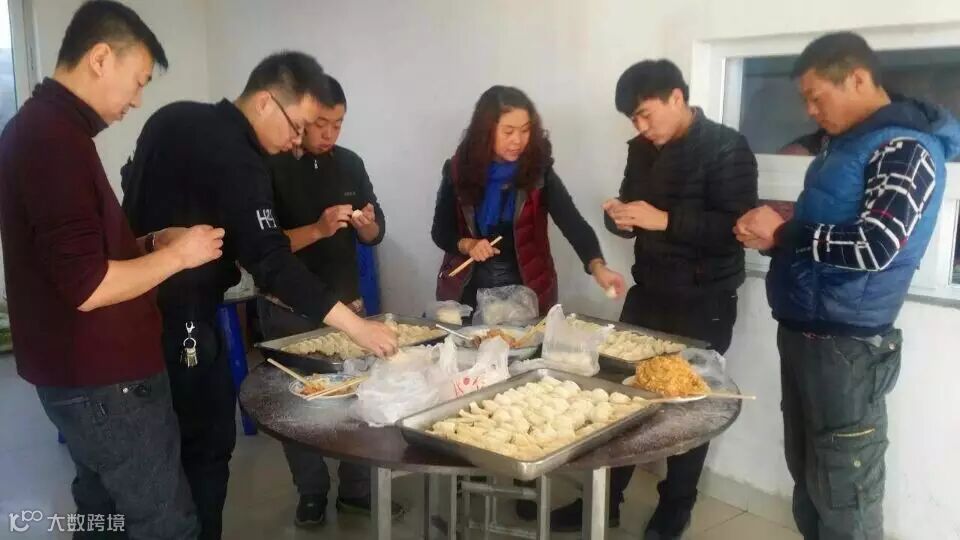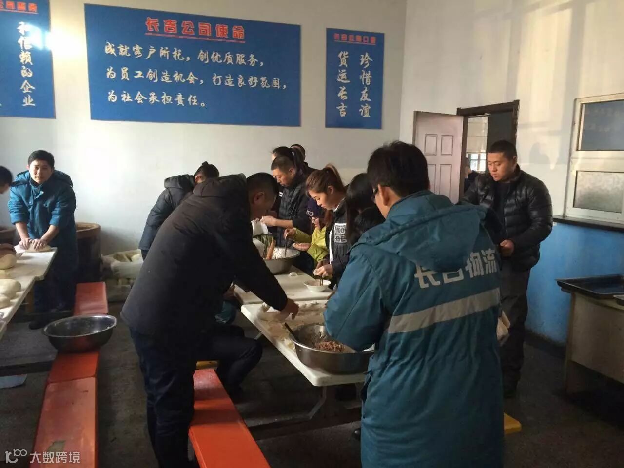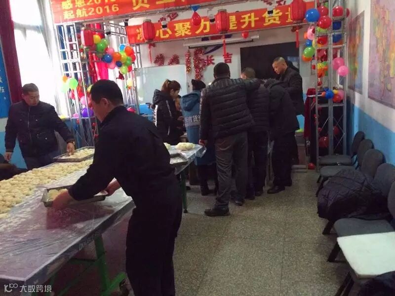 长春家人们团聚在一起包饺子,正如长春家人们的口号一样“感恩2015,起航2016、凝心聚力、提升货量”