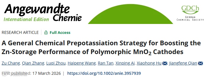 武汉大学钱江锋/胡晓宏团队Angew:30秒常温化学预钾化策略,全面提升MnO2正极储锌性能