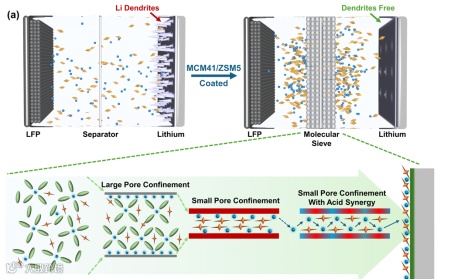 通过分子筛中孔隙度与酸性的协同作用实现锂金属电池中的受限离子调控
