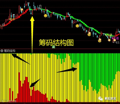 筹码结构中:红筹涨、绿筹减代表逐步筑底,准备进场;红筹减、绿筹涨代表顶部逐步形成!