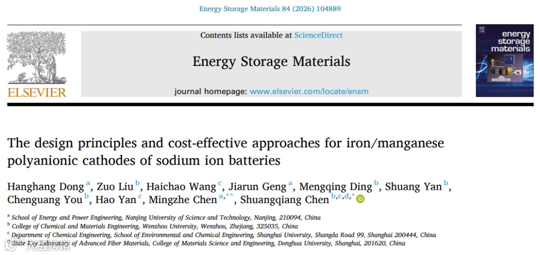 近日,来自南京理工大学的陈明哲教授与温州大学,东华大学的陈双强教授合作,在国际知名期刊Energy Storage Materials上发表题为“The design principles and cost-effective approaches for iron/manganese polyanionic cathodes of sodium ion batteries”的观点文章。该观点文章全面回顾了Fe/Mn基聚阴离子正极材料的发展历程和最新进展,重点阐明了Jahn-Teller效应的起源以及Fe3+/ Fe4+氧化还原对的活化机制,并评估了这些材料在不断发展的储能市场中面临的持续性科学挑战和新兴机遇,并分析了其商业可行性。
