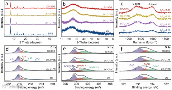 图3. MOF衍生碳及其前驱体材料的部分物化表征。