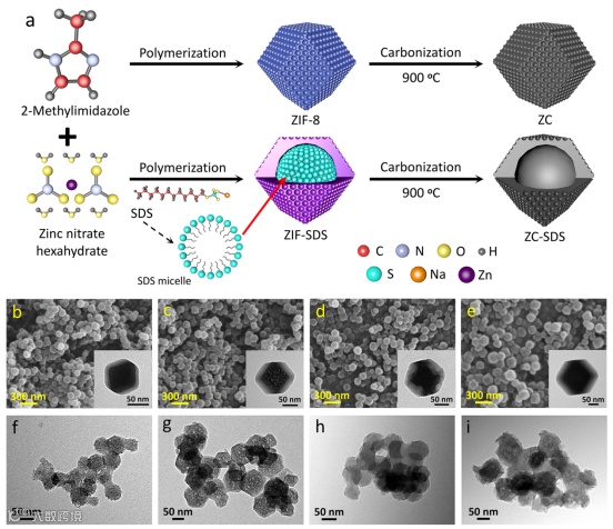 图2. MOF衍生碳合成示意图及形貌结构表征。