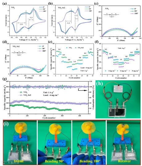 3·高负载软包电池取得突破性进展基于VO2-Se2正极组装的高负载(~6 mg cm-2)软包电池,在1 A g-1下循环450圈,容量保持率高达99%,并展现出优异机械柔性,为实用化、高性能水系锌-钒软包电池提供了可行方案。