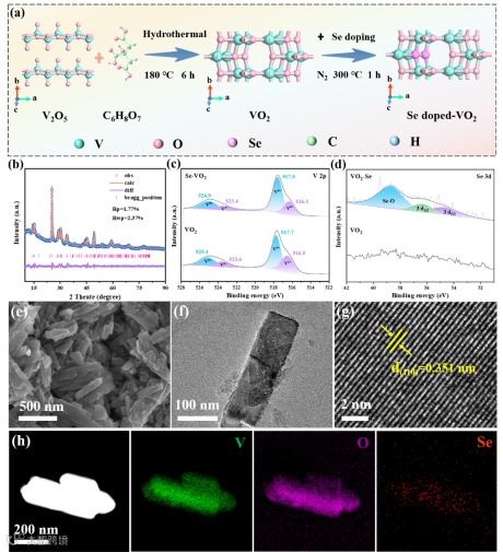 图一:VO2-Se的制备流程及结构表征。