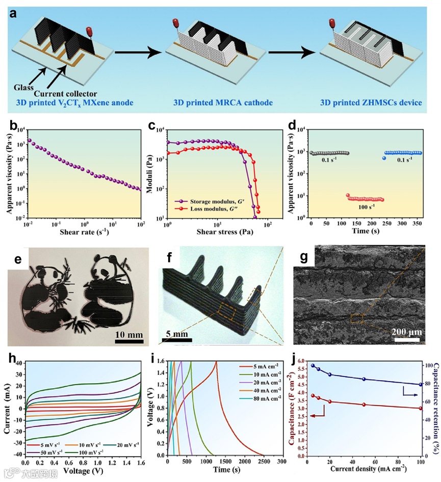 图3墨水直写制造的MXene基电极、叉指型ZIMC及其性能表征