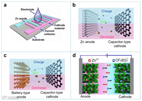 1. 论述叉指型 ZIMCs 的储能机制与结构体系:归纳叉指型ZIMCs锌金属负极//电容型正极、电容型负极//电池型正极、对称电极三类核心构型,阐明各构型储能机理与性能特点;明确器件关键性能评价指标。