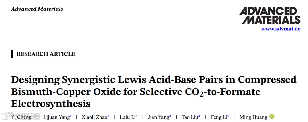 近日,电子科技大学黄明教授团队在国际期刊《Advanced Materials》上发表题为“Designing Synergistic Lewis Acid-Base Pairs in Compressed Bismuth-Copper Oxide for Selective CO2-to-Formate Electrosynthesis”的研究文章。该研究创新性地提出一种晶格压缩应变工程策略,通过在非化学计量比铋铜氧化物中精准引入应变,成功构建了高效的路易斯酸碱对协同活性位点,实现了在宽电流密度范围内高选择性、高稳定性电合成甲酸盐。