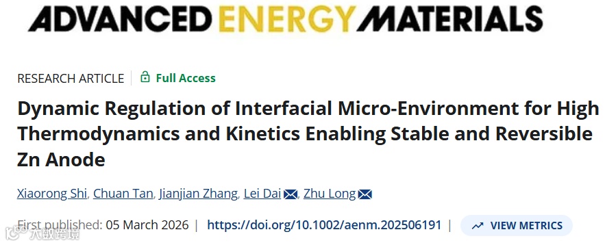 在清洁能源与可再生能源快速发展的背景下,水系锌离子电池因其高安全性、低成本与环境友好性,在大规模储能领域展现出巨大应用潜力。然而,锌负极在水系电解液中易发生析氢、腐蚀、钝化及枝晶生长等副反应,这严重损害了其稳定性与可逆性。这些副反应的本质是热力学与动力学层面的双重问题:从热力学角度来看,锌负极在水环境中热力学稳定性较差,易与电解液中游离水分子发生相互作用,引发析氢、腐蚀;从动力学角度而言,锌离子在锌负极/电解液界面的去溶剂化过程缓慢、迁移效率低下,导致界面处锌离子通量与浓度分布不均,最终引发锌的不均匀沉积和枝晶的肆意生长。因此,优化锌负极/电解液界面的的微观结构与化学环境对提升水系锌离子电池的高循环稳定性具有重要意义。