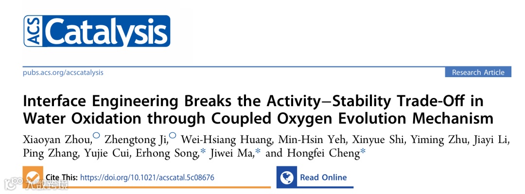 近日,来自同济大学的程洪飞研究员、马吉伟教授与中国科学院硅酸盐研究所的宋二红教授合作,在国际知名期刊ACS catalysis上发表题为“Interface Engineering Breaks the Activity–Stability Trade-Off in Water Oxidation through Coupled Oxygen Evolution Mechanism”的研究工作。该工作通过异质结工程构筑了AgxO/CoOOH异质界面,并引入Fe掺杂强化界面稳定性,实现了在工业条件下的稳定水电解。原位表征结合DFT计算证实,异质界面的构筑触发了吸附氧物种与晶格氧的直接耦合,绕过了线性标度关系的限制,同时强化的界面有效提升了催化剂的稳定性。