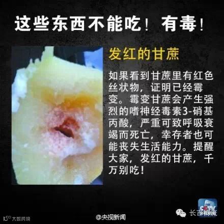①内部发红甘蔗,严重可致呼吸衰竭