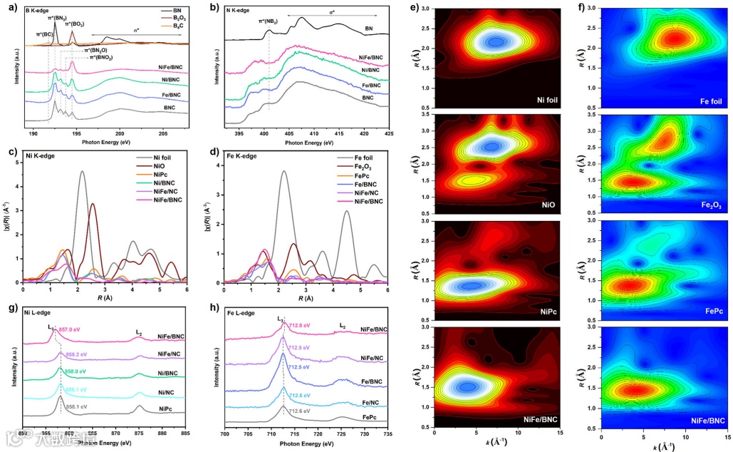 图2. NiFe/BNC催化剂的局部配位结构与电子相互作用