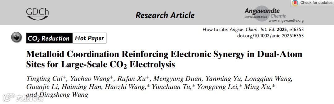 类金属配位增强双原子位点电子协同作用助力大规模CO2电解