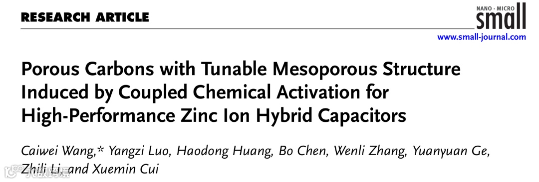 近日,来自广西大学的王才威助理教授,在国际知名期刊Small上发表题为“Porous Carbons with Tunable Mesoporous Structure Induced by Coupled Chemical Activation for High-Performance Zinc Ion Hybrid Capacitors”的研究文章。该研究文章提出0.6-1 nm的微孔作为存储位点来容纳Zn2+离子,1-2 nm的微孔和2-4 nm的介孔则负责将Zn2+离子传输至0.6-1 nm的微孔。