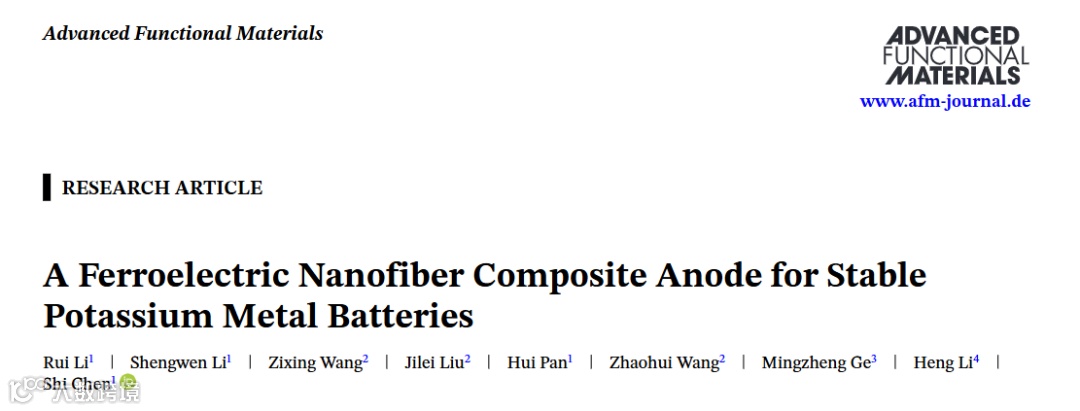 近日,澳门大学陈石教授、中国科学院上海硅酸盐研究所李恒研究员,在国际知名期刊Advanced Functional Materials上发表题为“A Ferroelectric Nanofiber Composite Anode for Stable Potassium Metal Batteries”的观点文章。通过构建三维铁电钛酸钡纳米纤维(BTONFs)网络来调控铁电极化场的策略,并制备了BTONFs/K复合负极。BTONFs的各向异性多畴结构能够产生快速响应和均匀的自发极化场,有效均匀化局部电场和K⁺离子通量,降低成核势垒,从而引导均匀且抑制枝晶生长的K沉积。得益于此设计,BTONFs/K负极表现出良好的稳定性,在对称电池中以1 mA cm⁻² /1 mAh cm⁻²的电流密度循环超过690小时。此外,采用普鲁士蓝正极的全电池在10 C高倍率下循环1000次后仍保持81.8%的容量。包括原位光学显微镜、压电力显微镜(PFM)和相场模拟在内的多尺度研究共同证实了铁电极化场在抑制枝晶生长和稳定界面方面的主导作用。这项工作首次利用铁电材料的微观结构和尺寸来调控极化场,为基于铁电场调控KMBs中的电化学过程提供了一种新的范式。