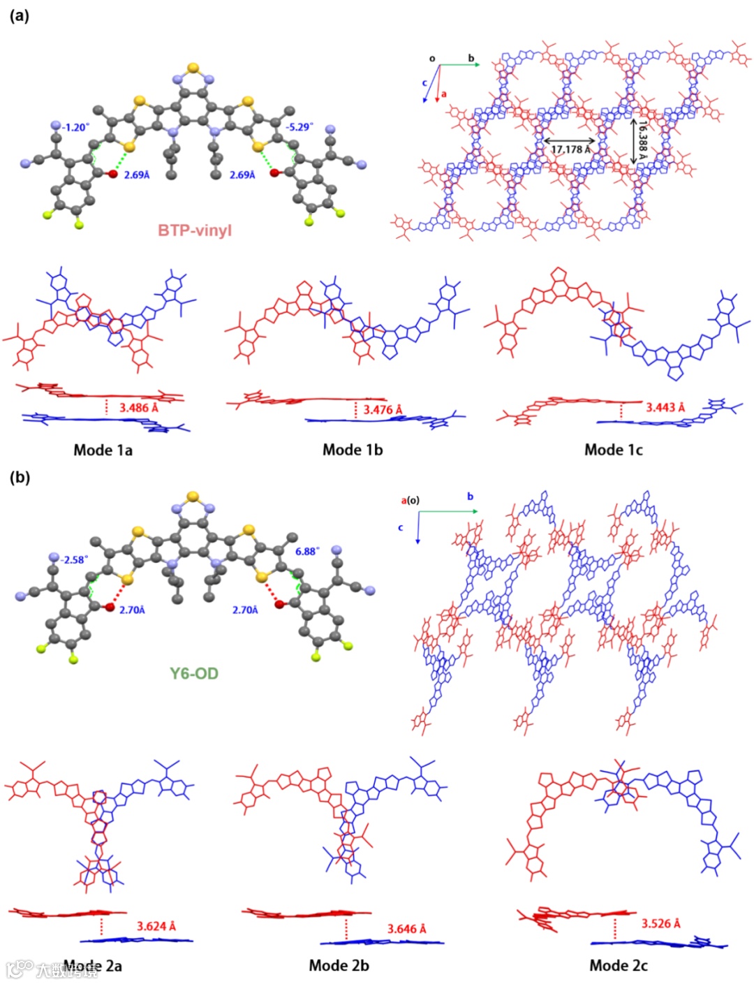 图3 单晶结构揭示BTP-vinyl更紧密的π–π堆积与三维分子网络