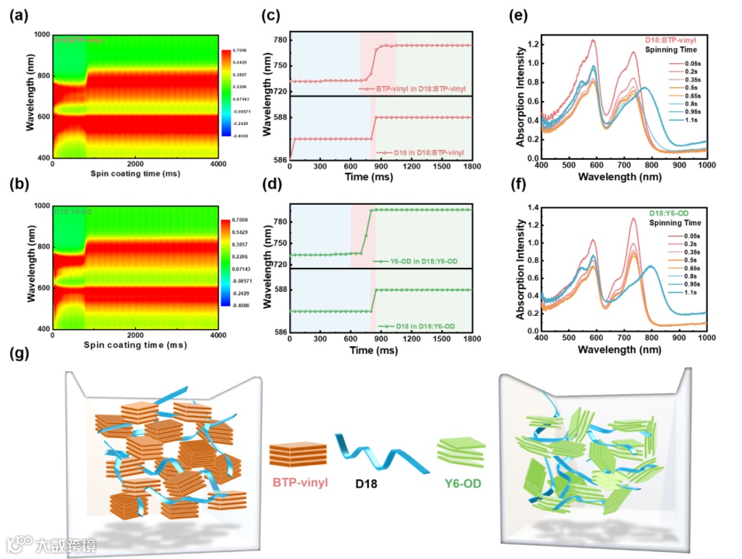 进一步将BTP-vinyl作为第三组分引入D18:L8-BO体系,所制备的三元器件效率突破20%关口,达到20.06%。通过单晶解析、原位光谱、GIWAXS、RSoXS及瞬态吸收等多尺度表征,研究系统阐明了UVB策略在调控分子堆积、抑制能量损失、延长激子扩散、降低复合等方面的作用机制,不仅为高性能有机光伏材料的理性设计提供了新范式,也为未来通过精准聚集调控实现高性能、高稳定性有机光伏器件提供了新思路。