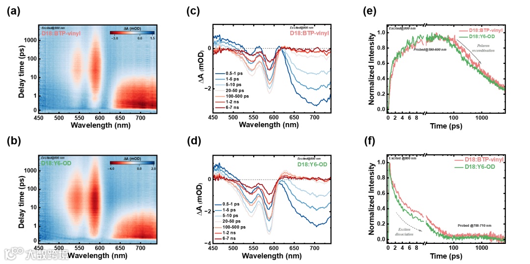 图5 飞秒瞬态吸收光谱揭示更快的空穴转移与更长的激子扩散寿命