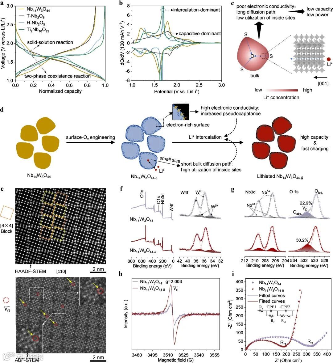 要点一:表面氧空位工程助力Nb14W3O44-δ负极实现赝电容增强型高比容量