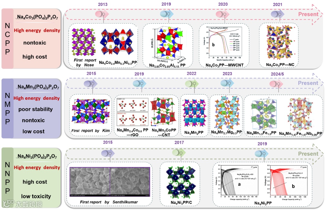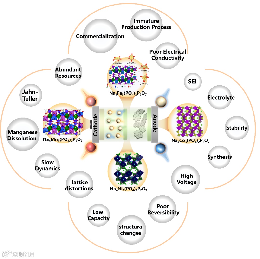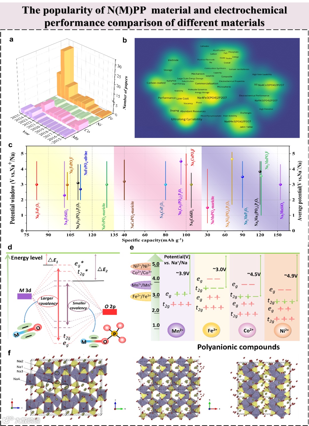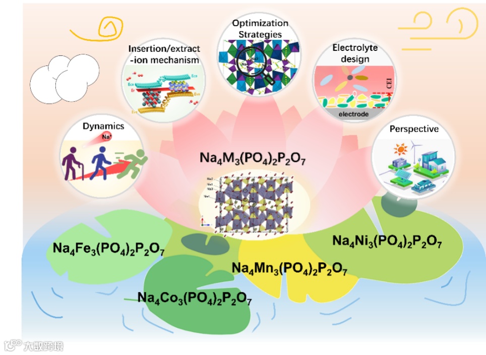 全球“双碳”目标下,可再生能源的大规模应用推动了电化学储能系统的需求增长。钠离子电池因钠资源丰富、成本低廉,成为大规模储能的理想候选。聚阴离子型 Na4M3(PO4)2P2O7(M=Fe、Co、Mn、Ni,简称 N (M) PP)体系材料,凭借稳健的三维开放框架和优异的储钠性能备受关注。然而,过渡金属类型差异导致材料的电化学性能存在显著不同,部分材料面临循环稳定性差、Jahn-Teller 畸变、高电压下电解液兼容性不足等问题。因此,系统总结过渡金属对该体系的影响,揭示不同材料直接优化策略的差异同时优化材料结构与电解液适配性,成为推动其商业化的关键。