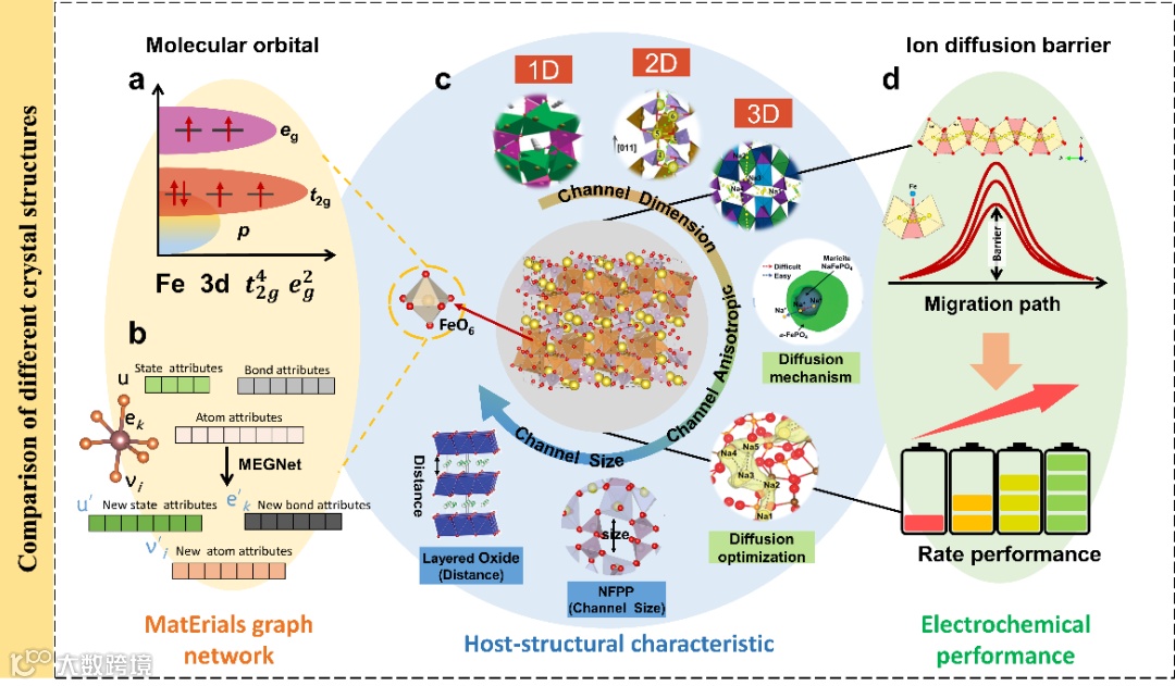 同时横向对比Fe基材料的不同维度,并说明了影响材料的不同因素,如扩散维度,通道的各向异性,通道的尺寸从而影响材料的扩散能垒,提升材料的电化学性能。