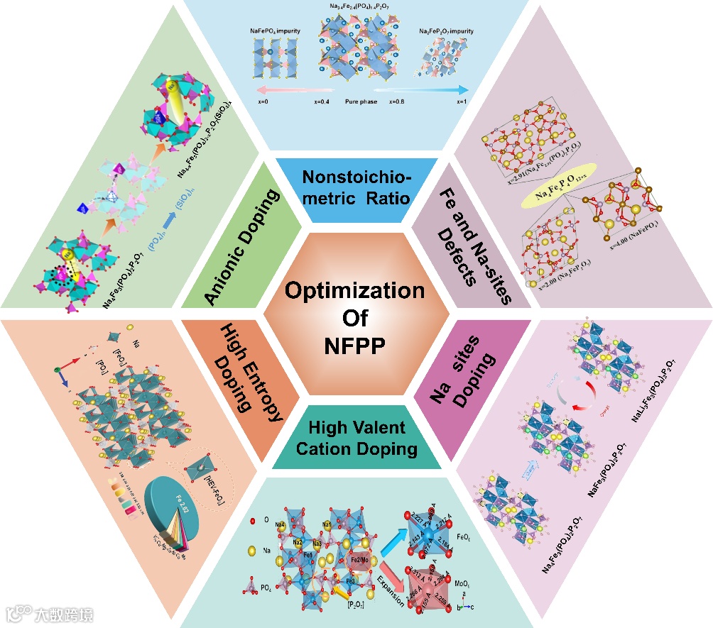 多元掺杂:包括 Na 位点掺杂(Li、K)、高价阳离子掺杂(Al、V、Zr、Ti)、高熵掺杂及阴离子掺杂(SiO₄⁴⁻、F⁻),多维度优化结构与动力学性能。