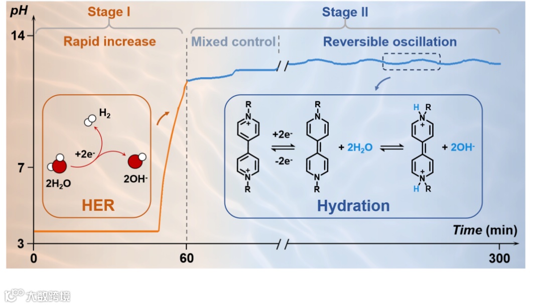 图1. 紫精负极双阶段碱化机制示意图。