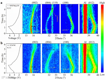 图3. NNFM和NNFM@3N的原位XRD图谱