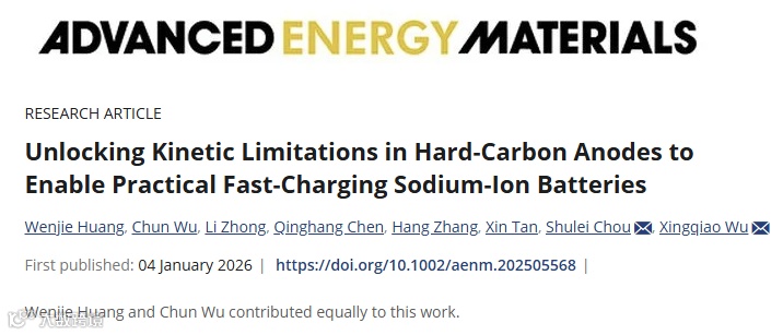 近日,温州大学吴星樵/侴术雷联合长沙理工大学吴春,在国际知名期刊Advanced Energy Materials上发表题为“Unlocking Kinetic Limitations in Hard-Carbon Anodes to Enable Practical Fast-Charging Sodium-Ion Batteries”的文章。该文章提出了一种通过调控前驱体组分设计差异化孔结构的策略,以此研究硬碳材料的倍率失效机制。