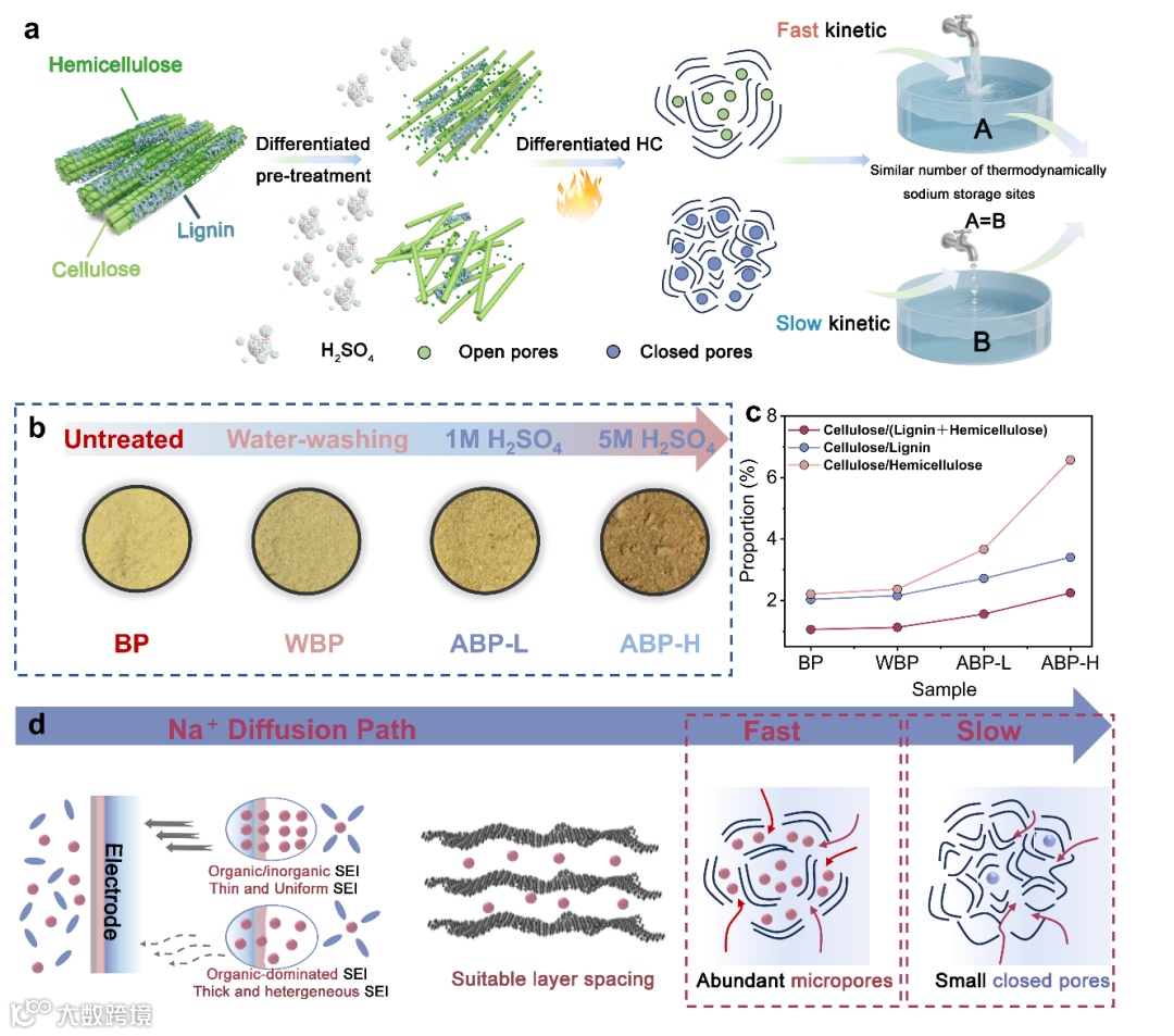 图1. 硬碳设计示意图及影响硬碳倍率性能的关键因素。