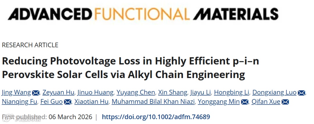 有机-无机金属卤化物钙钛矿太阳能电池(PSCs)因其优异的光电特性和快速提升的功率转换效率(PCEs),已成为最具前景的光伏技术之一。尽管取得了显著进展,但PSCs的PCEs仍低于Shockley–Queisser(S–Q)理论极限,这主要归因于开路电压(VOC)损失。这些损失定义为钙钛矿带隙与器件VOC之间的差值,可分为辐射复合损失和非辐射复合损失。这两类损失都受到晶界(GBs)和界面处缺陷的强烈影响,这些缺陷充当复合中心和离子迁移路径,最终限制了器件效率和运行稳定性。为减轻钙钛矿光伏器件中的VOC损失,大量研究工作致力于添加剂工程和界面工程。在界面工程的材料选择中,有机铵盐(OASs)因其能够同时钝化带正电和带负电的缺陷而脱颖而出,显示出巨大的应用潜力。然而,目前的工作更多关注官能团类型或碳链长度,对烷基几何构型的系统比较仍然有限,且OASs中烷基链结构在缺陷钝化、界面能级排列和VO提升中的作用尚未得到充分探索。