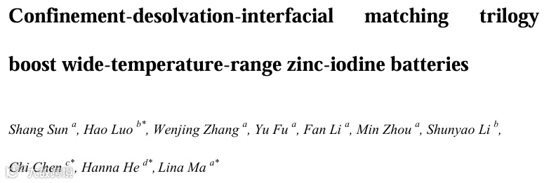 限域-去溶剂化-界面匹配三重机制提升宽温域锌碘电池性能