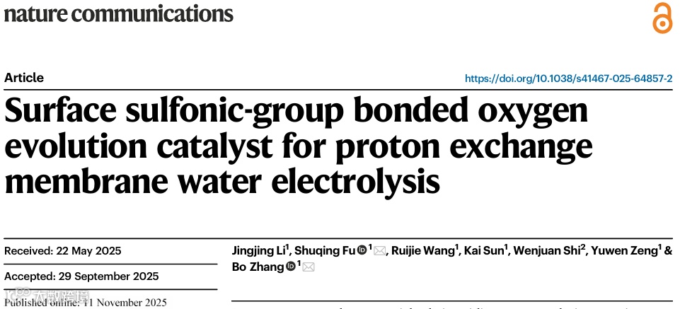 表面磺酸基团键合的析氧反应催化剂用于质子交换膜水电解槽