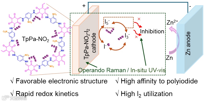 随着电动汽车与大规模电网储能需求持续扩大,先进电池系统的研发进程得到有力驱动,这类系统需在能源效率、成本效益与安全性三大核心维度实现协同优化。水系锌碘(Zn-I2)电池凭借高理论比容量、优异安全性及良好的电化学可逆性,被公认为极具应用潜力的储能技术方向。然而,其实际推广仍面临两大关键瓶颈:氧化还原动力学迟缓,以及可溶性多碘化物引发的穿梭效应。为破解上述难题,研究人员探索了多种技术路径,其中通过宿主材料对多碘化物进行物理限域与化学锚定的方法,被证实成效显著。多孔碳材料虽已获得广泛研究,但它与碘物种间的化学相互作用较弱,难以彻底抑制穿梭现象。杂原子掺杂策略则可通过调控局部电子结构、引入缺陷位点并暴露活性中心,有效提升材料对多碘化物的吸附性能。近年来,共价有机框架(COF)因兼具高比表面积、可调谐孔道结构与卓越化学稳定性,在功能性宿主材料领域备受青睐。已有研究表明,构建富含氮原子等电子给体位点的COF结构,能够显著强化碘的固定与传输性能。不过,官能团类型、孔径调控与碘吸附行为之间的构效关系,以及电子结构工程对多碘化物限域与反应动力学的协同作用机制,仍需开展系统且深入的阐释。