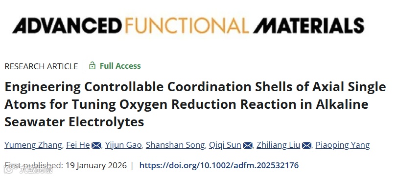 调控轴向单原子可控配位壳层以优化碱性海水电解质氧还原反应