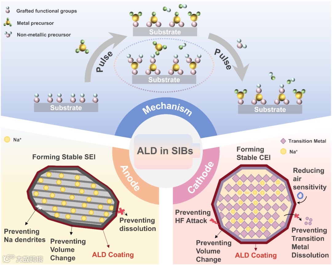 ALD基本原理示意图及其在SIBs正负极中的作用