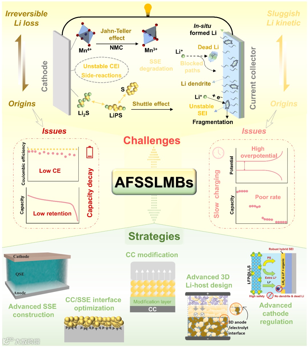 无负极固态锂金属电池(AFSSLMBs)面临的挑战和各种应对策略概述