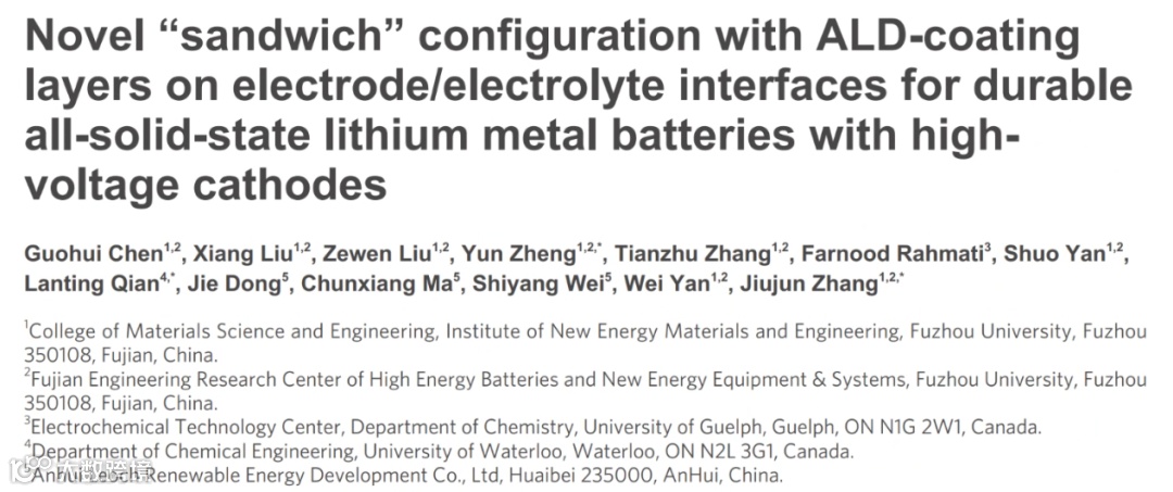 G. Chen, X. Liu, Z. Liu, Y. Zheng*, T. Zhang, F., R., S. Yan., L. Qian*, J. Dong, C. Ma, S, Wei, W. Yan, J. Zhang*, “Novel “Sandwich” Configuration with ALD-Coating Layers on Electrode/Electrolyte Interfaces for Durable All-Solid-State Lithium Metal Batteries with High-Voltage Cathodes”, Energy Mater. 2025, 5, 500064.