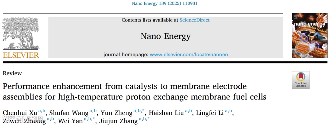 C. Xu, S. Wang, Y. Zheng*, H. Liu, L. Li, Z. Zhuang, W. Yan*, J. Zhang*, “Performance Enhancement from Catalysts to Membrane Electrode Assemblies for High-Temperature Proton Exchange Membrane Fuel Cells”, Nano Energy, 139, 110931.