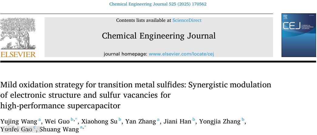 ‘’Mild oxidation strategy for transition metal sulfides: Synergistic modulation of electronic structure and sulfur vacancies for high-performance supercapacitor”