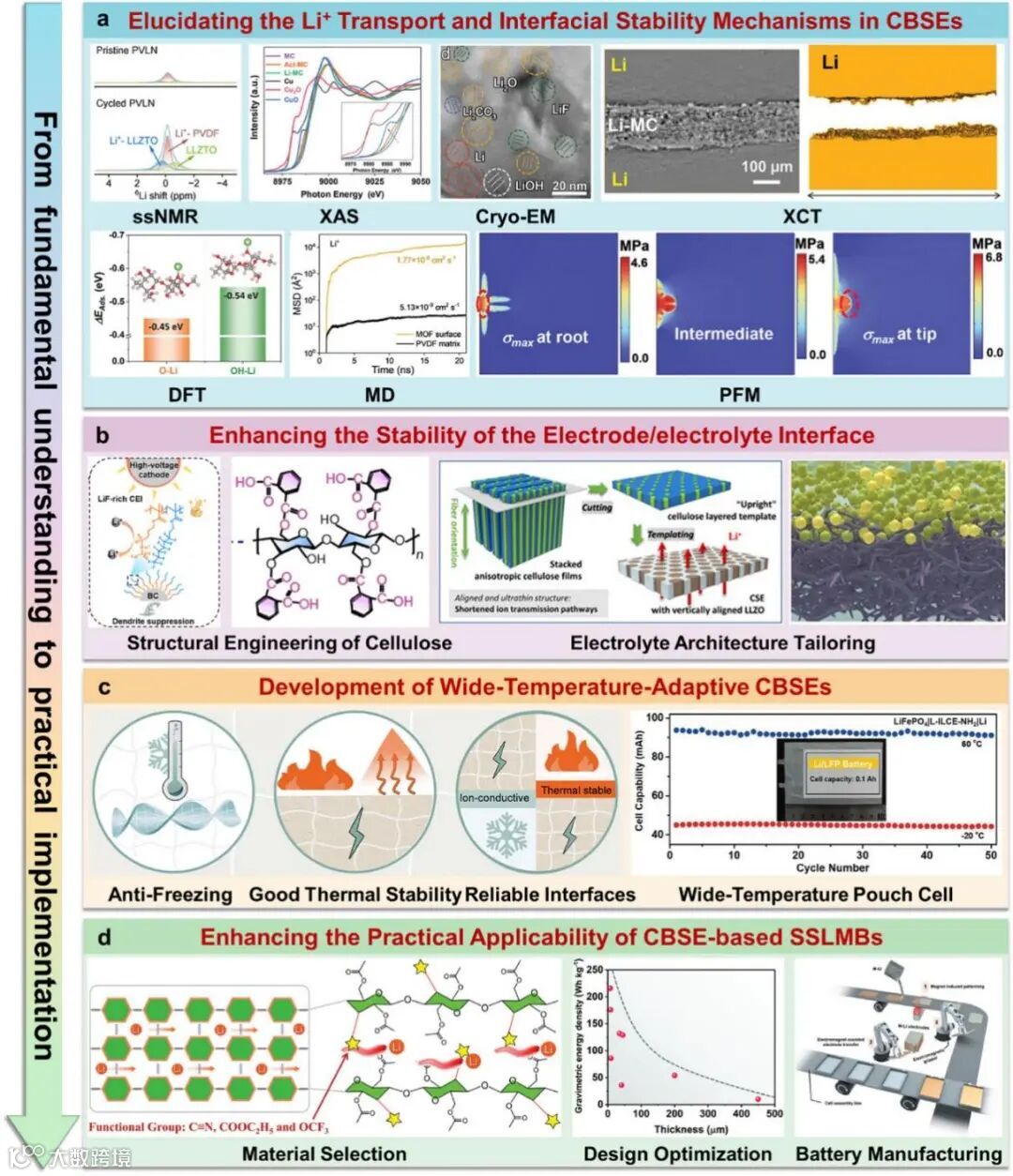 近日,来自北京林业大学许凤教授团队,在国际知名期刊Cellulose-Based Solid-State Electrolytes for Solid-State Lithium Metal Batteries: Advances in Functionalization Strategies and Interfacial Engineering”的综述文章。该综述文章聚焦于CBSE的制备策略、功能设计和电池性能优化机制,系统回顾其研究进展与挑战。