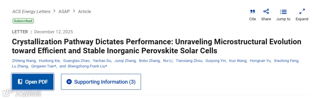 发表期刊:《ACS Energy Letters》(2025 年 12 月 12 日)